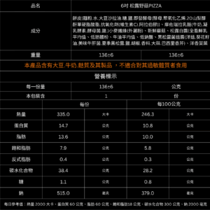 食材內容: 蘑菇片、起司、黑松露、手工薄脆餅皮 mushroom, cheese, black truffle, handmade crispbread crust 商品評價 目前沒有評價。 只有註冊並且購買過商品的顧客才能撰寫評價。