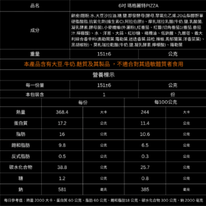 食材內容: 番茄、起司、羅勒、手工薄脆餅皮 (因使用新鮮九層塔製作,九層塔葉冷凍後顏色變深為自然現象) tomato, cheese, basil, handmade crispbread crust 商品評價 目前沒有評價。 只有註冊並且購買過商品的顧客才能撰寫評價。